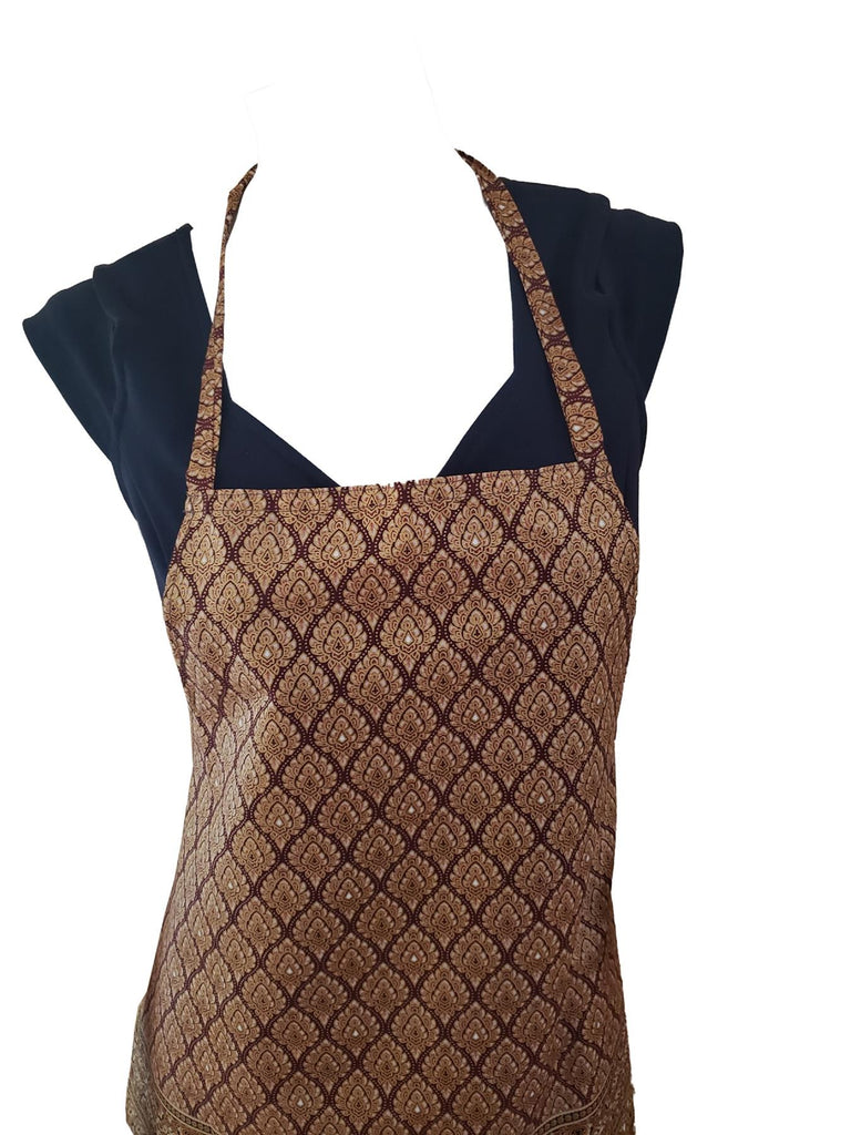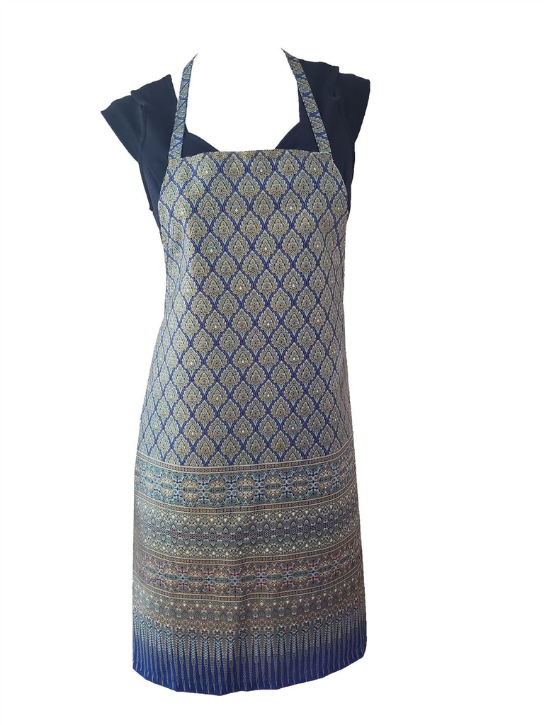 Apron Thai Benjarong Style Printed Design in Bright Colors with floral motif