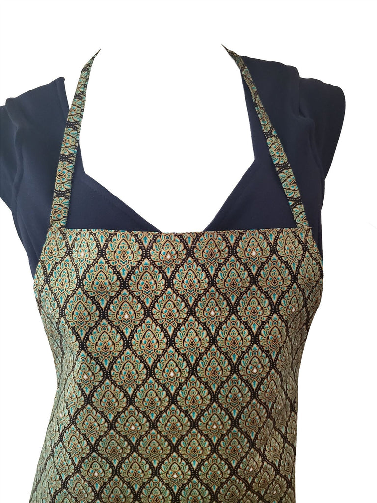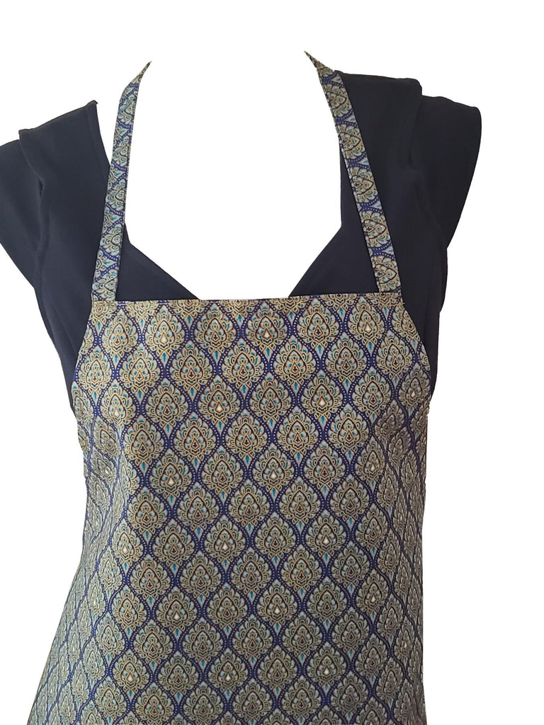 Cotton Machine Wash Style: Benjarong is a special kind of design on porcelain wares in Thailand. The word “Benjarong” literally means “five colors” so you will see that most of the aprons will have 5 different colors, with clear and crisp print and bordering the design with gold print. Mainly trellis design with a delicate diamond pattern with a flame or a flower in the middle. Size: 30"(L) x 22"(W) - One Size fits all Vivid and Bold colors, clear image screen printed, and hand made. Perfect gift for Mothers Day, Christmas. Unique for any occasion activities like cooking, baking, grilling, serving, and painting. EASY CARE : Machine wash with like colors, do not bleach, tumble dry low and warm iron if needed.
